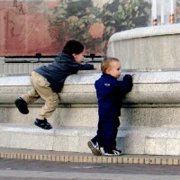Playing in the circular fountain at Victory Square where I sat after my last class finished